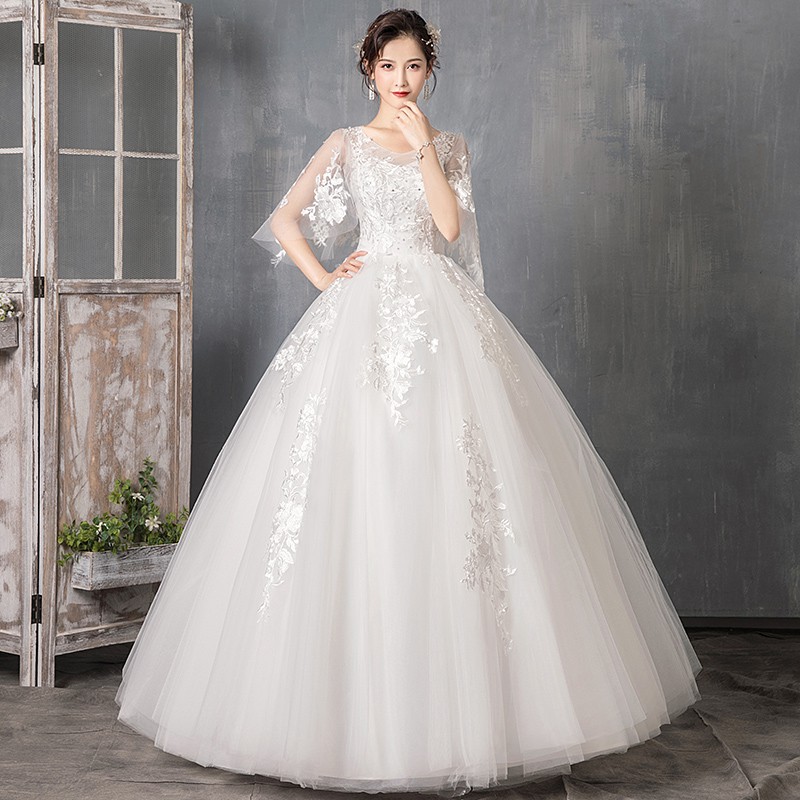 White Simple Elegant Half Sleeve Lace Embroidery Maxi Wedding Party Gown Dress Shopee Philippines