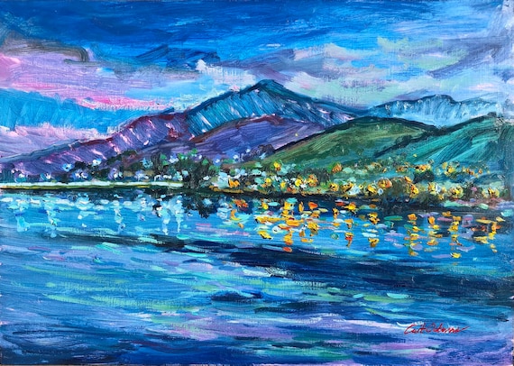 Peinture de paysage d'huile Nuit au-dessus du lac avec | Etsy